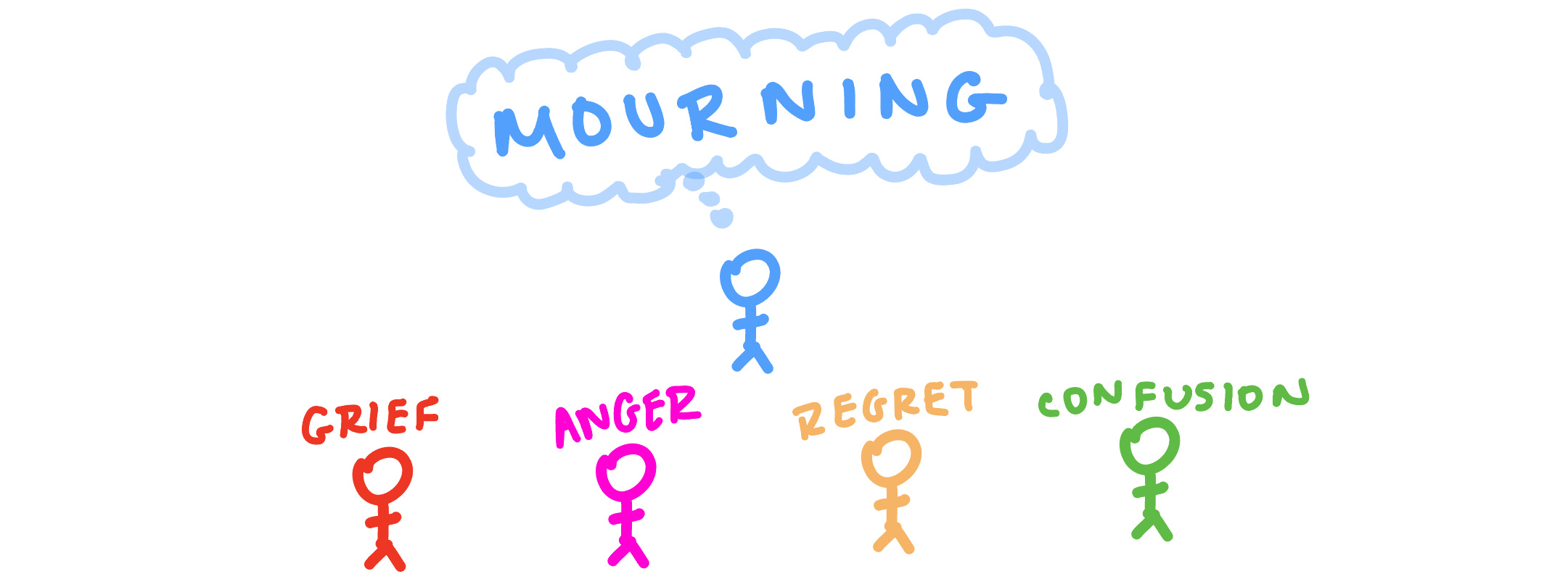 What does it mean to you? Why? How is that different from what he thinks or she thinks? What color does mourning look like to you? What have you mourned? How do you define it? How is it similar to a sense of loss? How is it different?